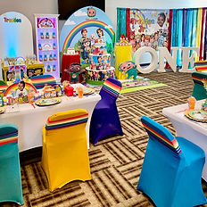 THIS PACKAGE IS FOR CHILDREN ONLY. YOU CAN ALSO CHOOSE ANY THEME! ***2.5 hours needed for setup*** This package is for "12 CHILDREN" including the birthday kid. ****KID TABLES & CHAIRS ARE PROVIDED**** Event duration is 3 hours. This means the event must be 3 hours long in order to avoid the additional per hour charge. For each additional hour needed, $50 per hour is accrued. *****DECOR***** -1 Treat Table or Pedestals w/Backdrop, Curtains and Balloons -2 Children Tables (6 Children Per Table) (Fully Decorated) -1 Photo Area w/Custom Backdrop & Balloons -2 Dozen Treats (For Treat Table or Pedestals) -1 Dozen Favors (For Treat Table or Pedestals) -Custom Candy Boxes {candy not included} -Custom Beverage for Kids -Custom Coloring Book w/Crayons or Activity Placemat w/Dry Erase Marker -Themed Décor & Props -Uplights -1 LED Number (For Age) ***Add-ons*** (Items that can be added) -Digital Invitation ($20) -Video Invitation ($40) -Soft Play/Kid's Play Area (refer to the Kid's Play Area tab) -Arch Backdrops ($200) -Treats/Favors ($40-$55 per dozen) -Floor Decal/Banner (depending on size) -Candy Cart ($150) -Throne Chair $100 (Kid Throne Chair $50) -Name Table (starting at $100) -LED name ($55 per letter) -Backdrop (refer to the Backdrop tab) ****KID TABLES & CHAIRS ARE PROVIDED**** (Include set up time when booking your venue) Please enter your setup time as your start time upon booking your event. ***Example: Your event will start at 5pm and the total setup time is 2.5 hours, you would reserve your booking time for 2:30pm